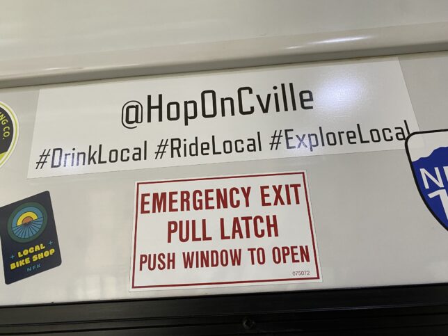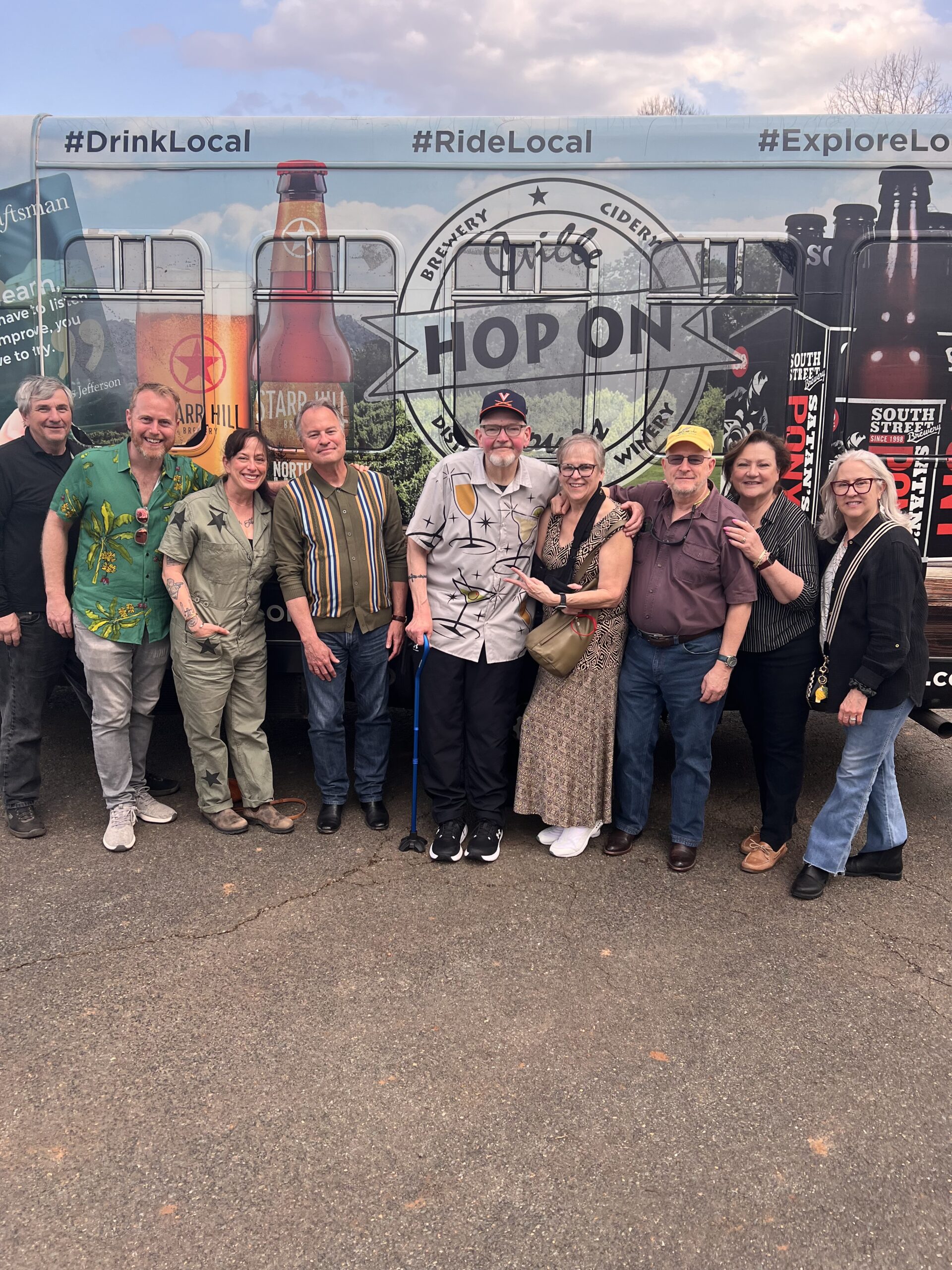 AJ and Lee were our hosts for the adventure, and Louis of Cville Hop On Tours chauffeured us to our various destinations. The HopOnCville bus was itself a fun experience. It was outfitted with snacks, water, koozies, and bins to hold our wine purchases. For readers who are interested in touring wineries on the Monticello Trail without the hassle of driving, I highly recommend Cville Hop On Tours.