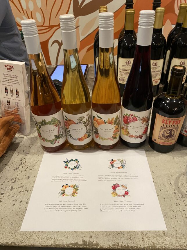 We then hopped on the bus to our next stop, Flying Fox Vineyard, for a surprise sample of vermouth. Flying Fox gives a speakeasy vibe, and it’s always fun to visit here if only to spot the friendly foxes prowling about the tasting room. Vermouth offerings include a vermouth crafted for each season, and my own favorite was the Cabernet Franc-based Winter. We then dined outdoors on gourmet sandwiches from Greenwood Grocery and Deli. It was a perfectly lovely day, and it was a treat to leave my jacket behind after a brutally cold winter.
