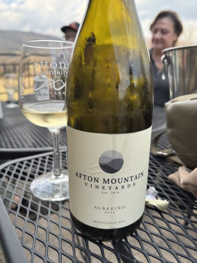 As the sun began to fade, Damien conducted a tasting for us adventurers that included a Sparkling Pinot Noir, the 2024 Albarino, a 2024 Merlot (carbonic maceration), and 2019 Tradition. Sparkling wines always brighten any experience, and this bottling from Afton Mountain brought with it joyful strawberry and melon notes as bubbles danced to the top of the glass. The 2024 Albarino was produced with fruit from various blocks of Albarino planted in the vineyard. Done in stainless steel, its stone fruit characteristics with shades of lime paired well with the warm afternoon. I enjoyed the light-bodied 2024 Merlot, carbonic maceration. Not all red wines need to be heavy hitters, and I often find myself searching for something to simply sip and enjoy either by itself or with an uncomplicated meal. This easy sipper sings with bright red berry notes. Give this one a quick chill and serve with a summer sunset! The 2019 Tradition is still evolving. Like 2017, the 2019 growing season was hot and dry. Dark fruit and tobacco aromas were hallmarks of this Merlot, Petit Verdot, and Cabernet Sauvignon blend. Dark cherry, intense blackberry, and currants were driven through the palate by nice acidity and developing tannins. I would put this one in the Hold category, or decant before serving now. Damien also treated us to samples of the 2023 Merlot and 2022 Tannat, but I forgot to take notes on them. I will hazard a guess that the 2023 Merlot, like other reds from that blockbuster growing season, was full-bodied yet fruity. 2022 Tannat—four years in the bottle with Tannat is still in its infancy. Tannat usually requires time to fully reveal itself because of the grape’s tannic nature. However, time usually rewards patience with Tannat, especially when served with a hearty beef dish. I will have to revisit Afton Mountain Vineyards to be certain, though!